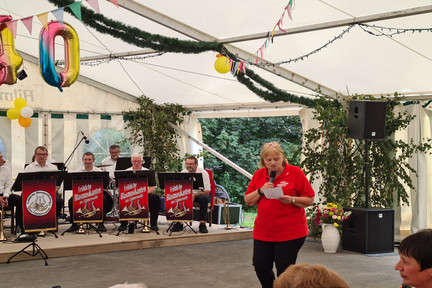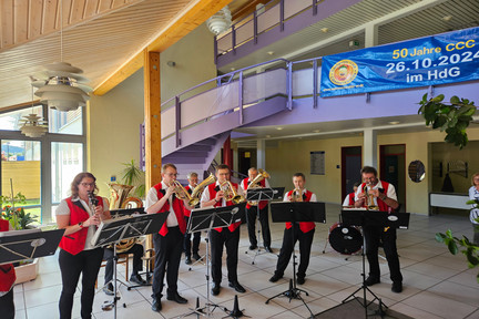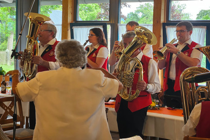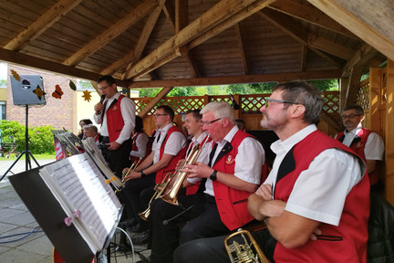 gefolgt. 18.00 Uhr trafen wir mit unseren Instrumenten ein und spielten zunächst einige Musikstücke und überbrachten die Glückwünsche des Vereins.