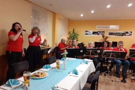 Für das leibliche Wohl war reichlich gesorgt und nach dem Abendessen gab es weitere 2 Stunden mit böhmischer Blasmusik, dabei wurden auch die Lieblingstitel der Musiker und Musikerinnen gespielt.